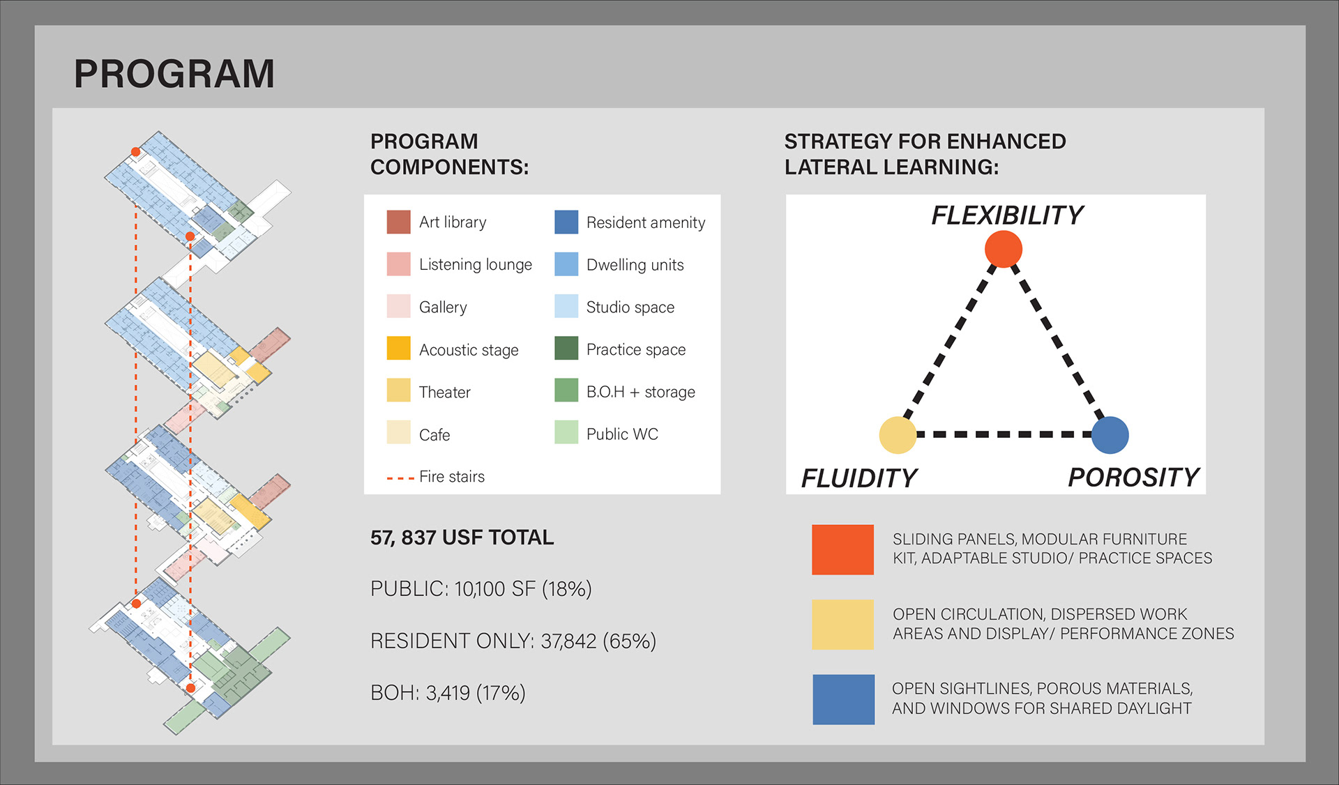 This thesis examines how refining access to live-work space can benefit artists and musicians, with a focus on integrating communal areas to foster stronger connections with neighbors, and flexible private studio spaces that prioritize artists’ individual needs.